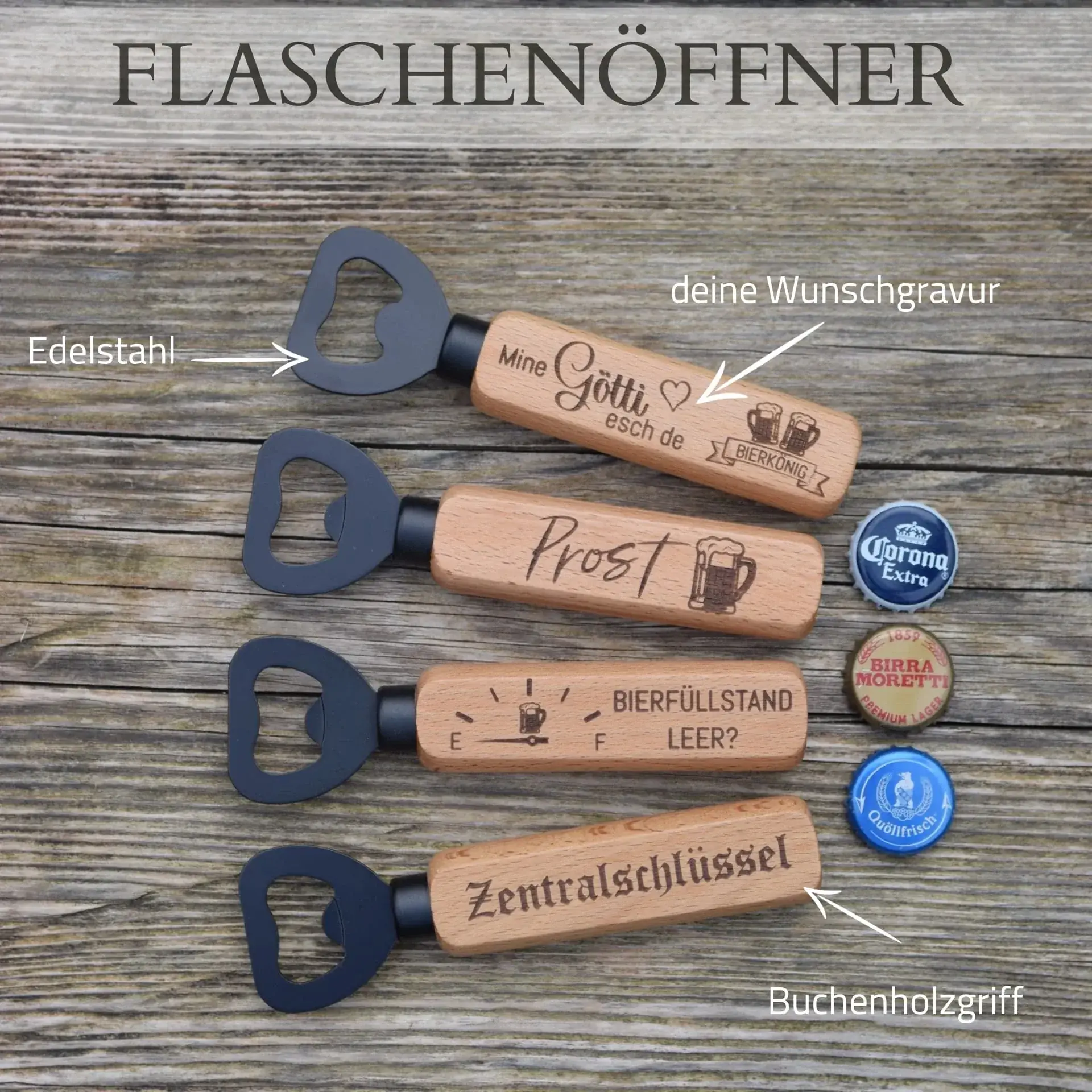 Flaschenöffner mit Buchenholzgriff