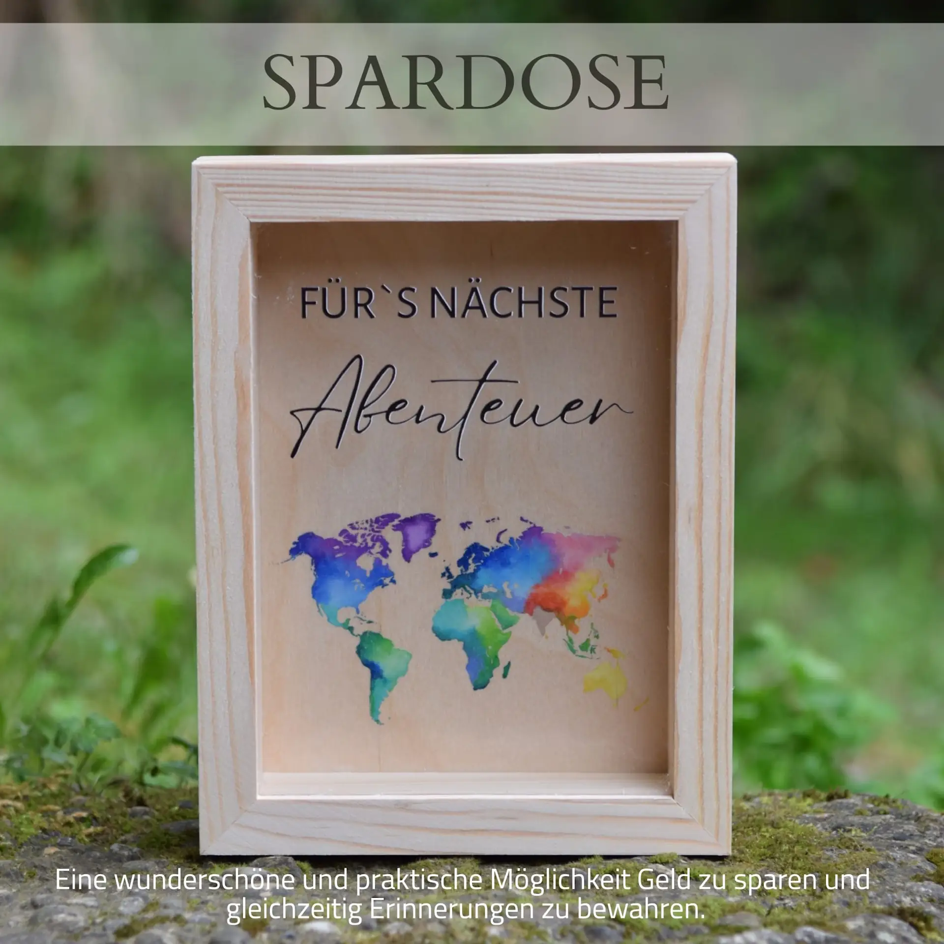Holz Spardose Bilderrahmen mit Glas